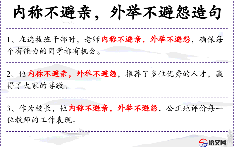 - 外举不避怨:指在外部推荐时不回避与他人的怨恨关系。