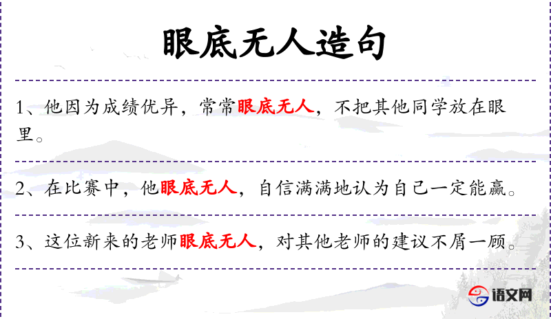 4. 【眼底无人】 眼睛里没有别人。形容狂傲自大,瞧不起人