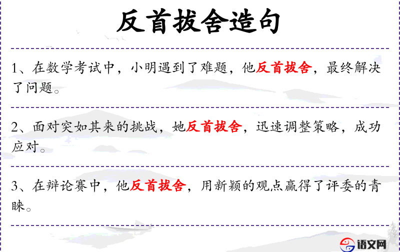 - 成语:“反首拔舍”是一个成语,源自古代典故,强调在困境中迅速改变方向。