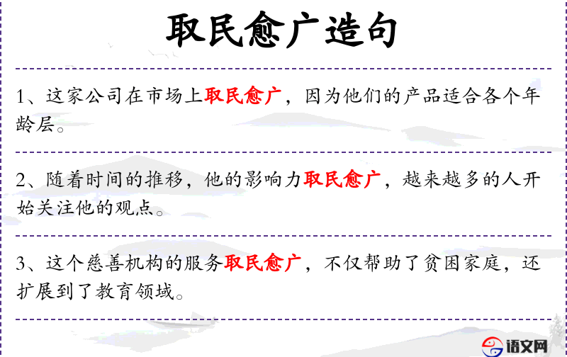 - 取民愈广:意味着吸引的用户越来越多。
