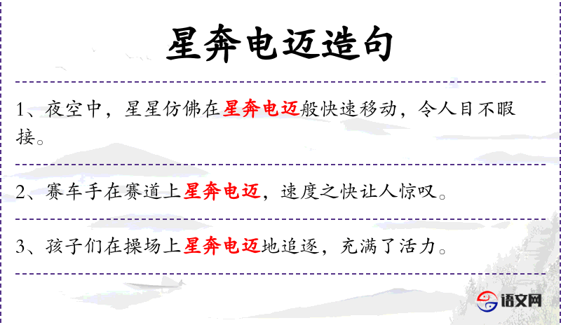 - 星奔电迈:形容速度极快,如同星星奔腾、电光疾驰。