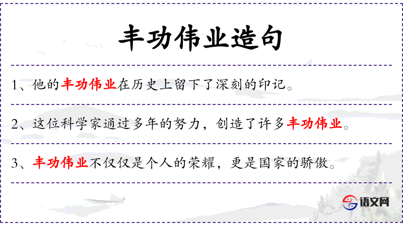 - 主语:丰功伟业