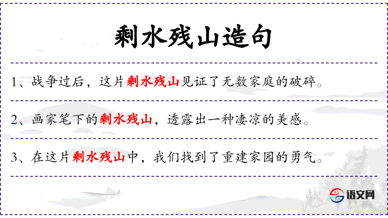 句子中的“剩水残山”可能源自古代文学,形容战乱或自然灾害后的荒凉景象。这种表达方式蕴含了深厚的文化意义,反映了人对历史和自然的深刻感悟。