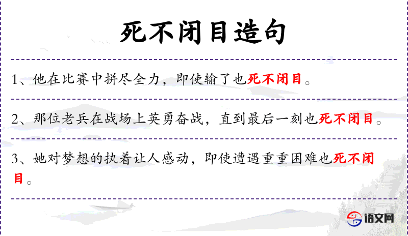 4. 【死不闭目】 原指人死的时候心里还有放不下的事。现常用来形容极不甘心。同“死不瞑目”。