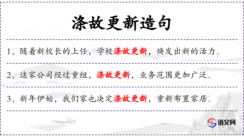 1. 【涤故更新】 - 涤除陈旧,换上新的。