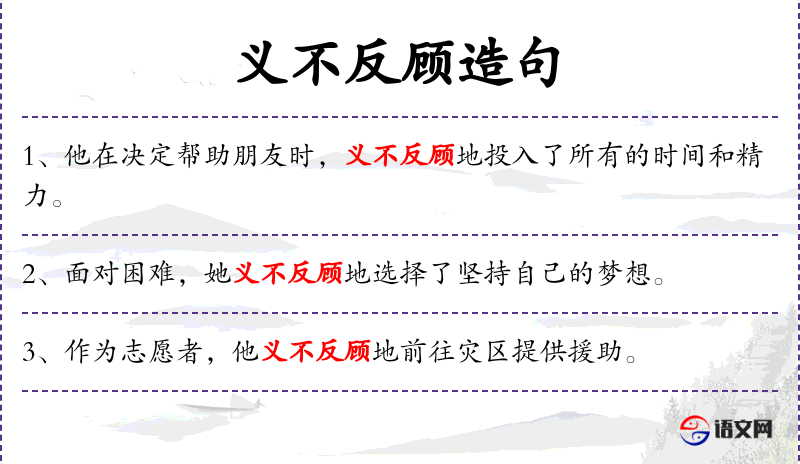 - 义不反顾:形容意志坚定,毫不犹豫。