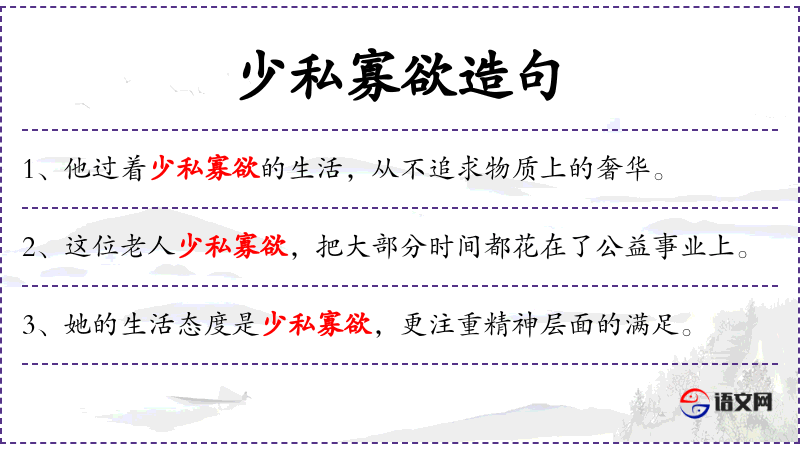 4. 【少私寡欲】 寡:少;欲:欲望。指仆人的欲望很小。