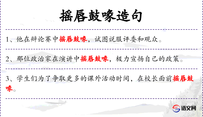 - 谓语:摇唇鼓喙,争取
