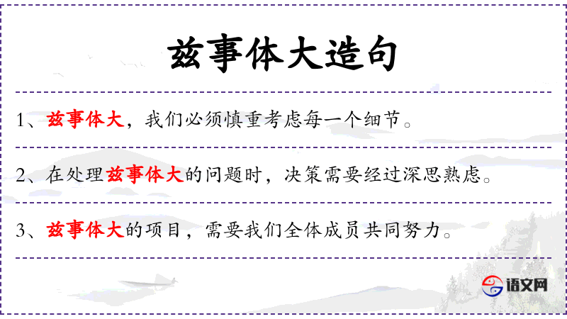 - 兹事体大:这是一个成语,意思是“这件事情非常重要”。