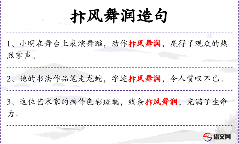句子:“这位画家的笔触细腻,画面抃风舞润,给人以美的享受。”