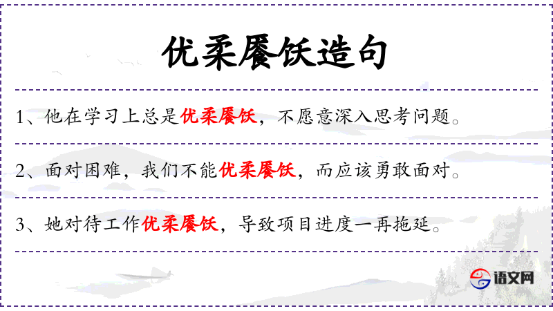 - 优柔餍饫:这个词组由“优柔”和“餍饫”组成。“优柔”意味着犹豫不决、缺乏果断;“餍饫”原指吃饱,这里引申为满足于现状,不思进取。