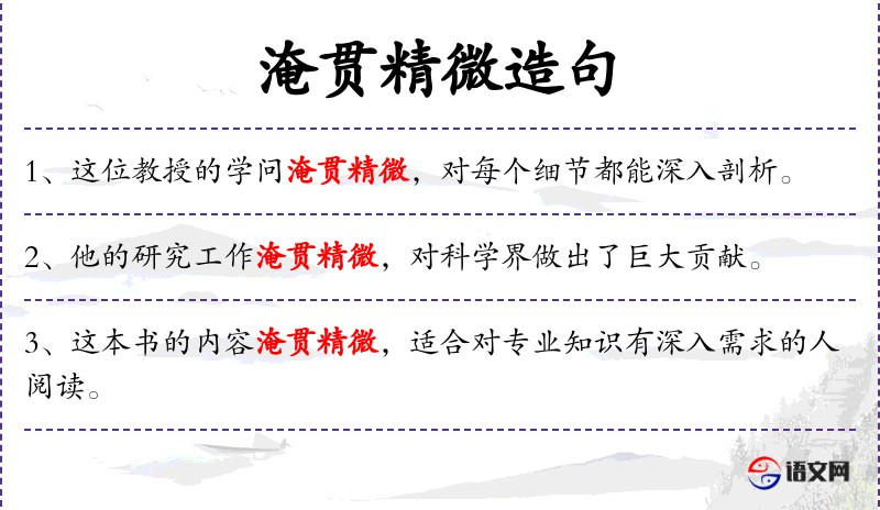 6. 【淹贯精微】 精微:精深微妙。渊博贯通、精深微妙。