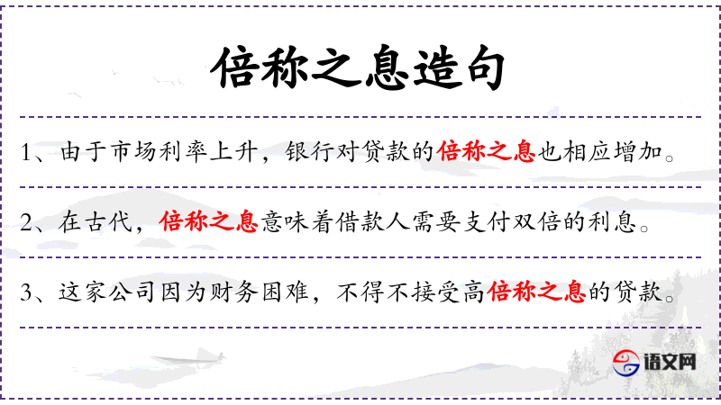 - 倍称之息:double interest,指利息是正常利率的两倍。
