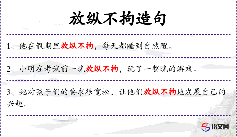 句子:“他在假期里放纵不拘,每天都睡到自然醒。”