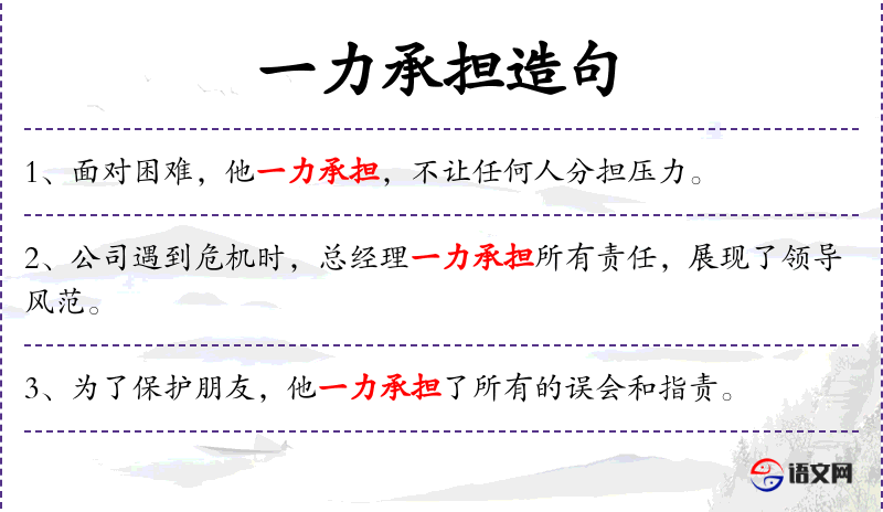1. 【一力承担】 一力:独力。一个人独自负责。