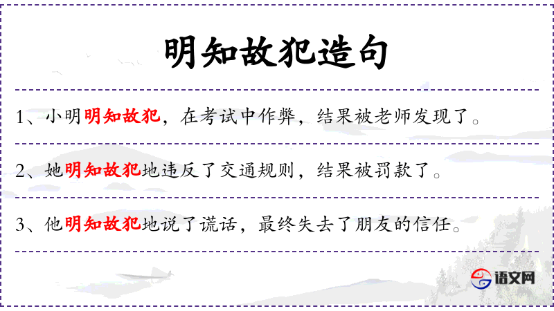 - 状语:明知故犯地