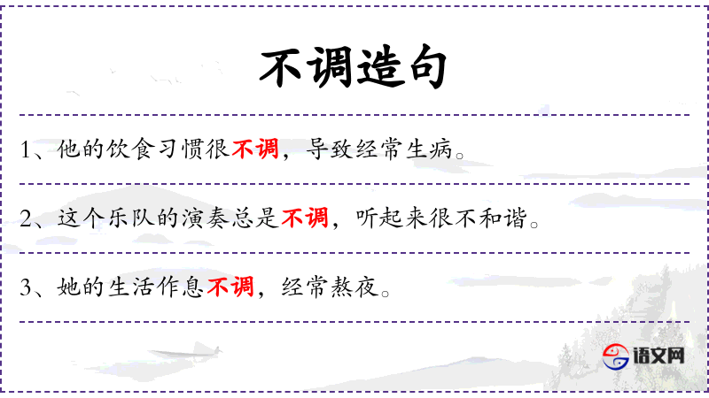1. 【不调】 不协调; 特指音调不和谐; 与人合不来。