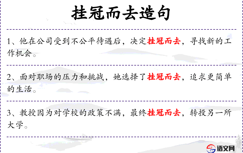 - 挂冠而去:比喻辞去官职或放弃某种地位。