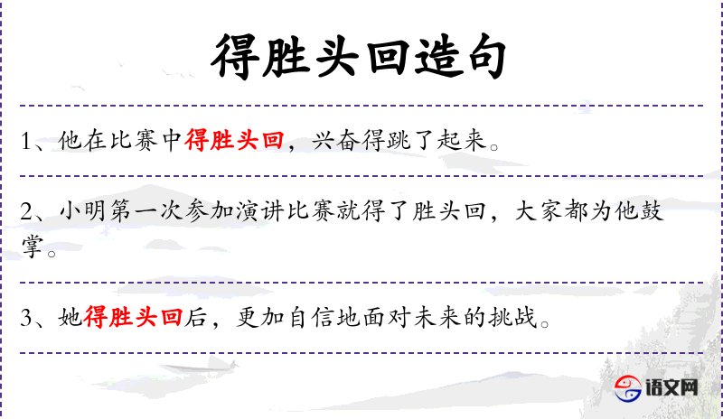 句子:“这次考试他得胜头回,成绩比以往都要好。”