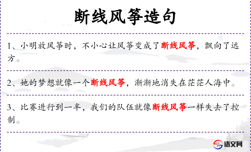 - 断线风筝:比喻失去控制或不稳定的状态。