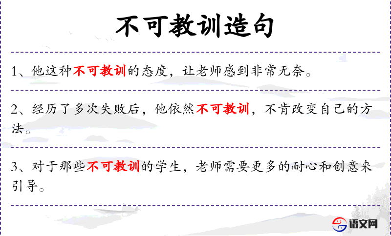 1. 【不可教训】 教训:教育,教诲。对某人无法进行教育。