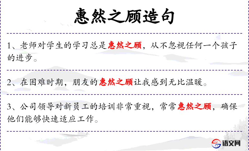 - 礼貌用语:“惠然之顾”是一种文雅的表达方式,传达了老师对学生的细心关怀。