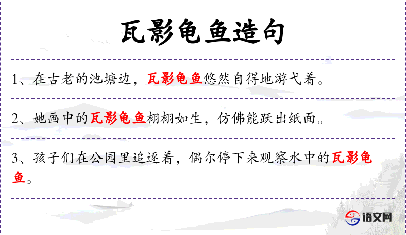 1. 【瓦影龟鱼】 池中的龟和鱼,依靠屋瓦的影子来遮蔽阳光。比喻求庇于人。