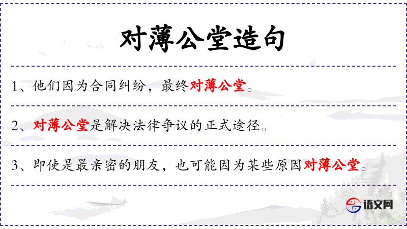 - *对公堂**:指双方在法庭上对峙,通常意味着法律纠纷。