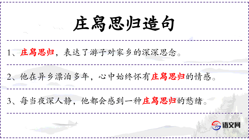 - 文化意义:思乡在**文化中是一个重要的主题,许多文学作品和诗歌都表达了这种情感。