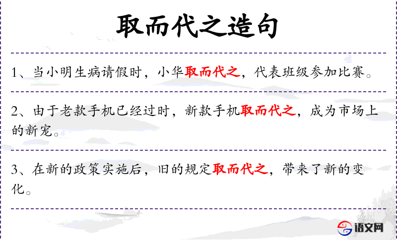 1. 【取而代之】 指夺取别人的地位而由自己代替。现也指以某一事物代替另一事物。