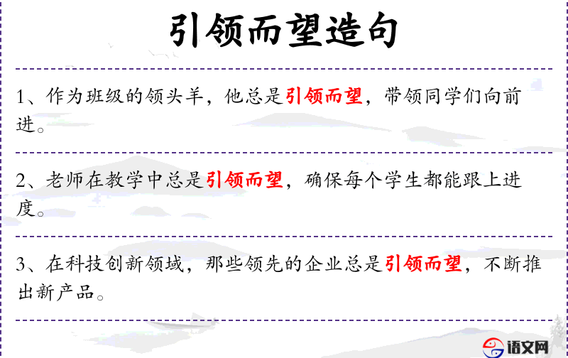 句子:“作为班级的领头羊,他总是引领而望,带领同学们向前进。”
