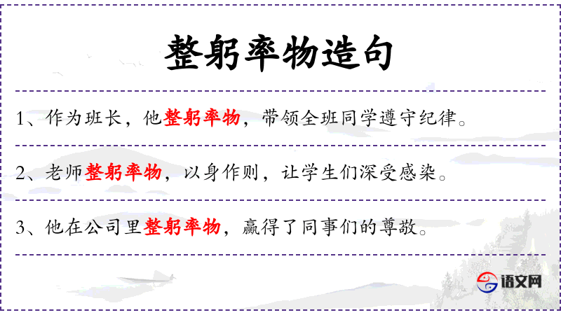 - 整躬率物:这是一个成语,意思是严格要求自己,以身作则。