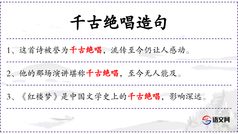- 千古绝唱:形容作品非常优秀,流传千古。