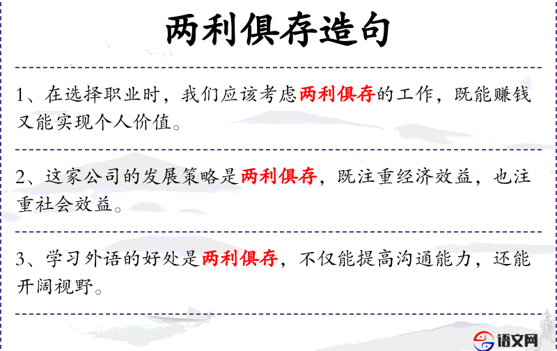 - 两利俱存:指两个事物可以同时存在并相互促进。