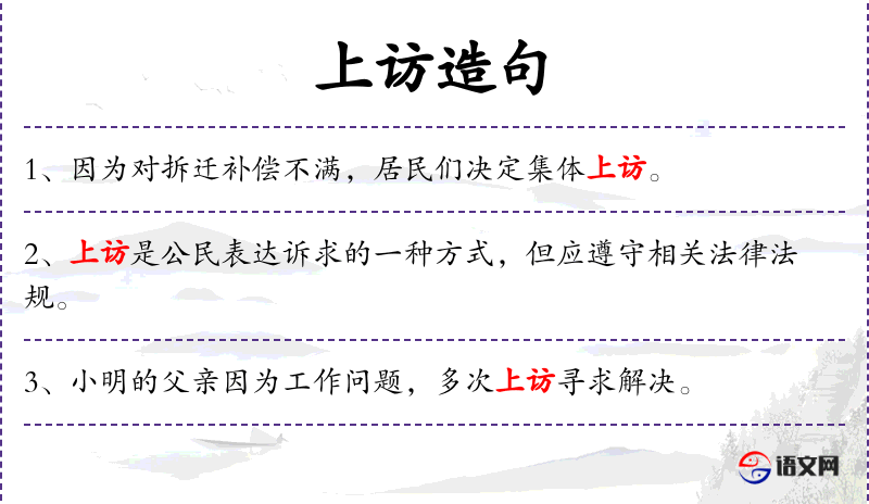 5. 【诉求】 - 诉说理由并提出请求:他耐心倾听老人~;愿望:要求:廉政成为广大群众对领导干部的一致~。