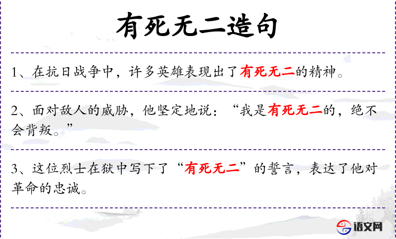 2. 【有死无二】 表示意志坚定,虽死不变。