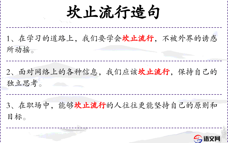 - 宾语补足语:要坎止流行,不被外界的浮华所迷惑