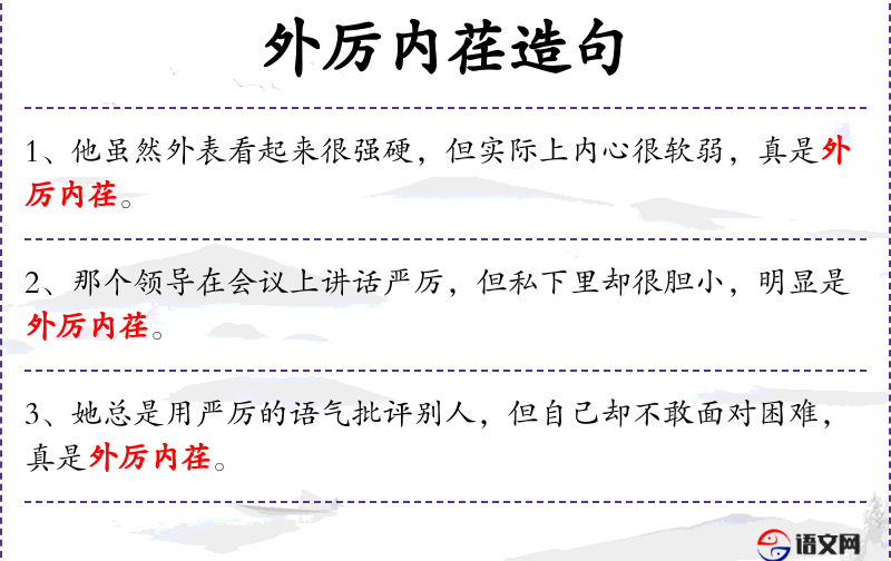 - 外厉内荏:成语,形容外表强硬而内心软弱。