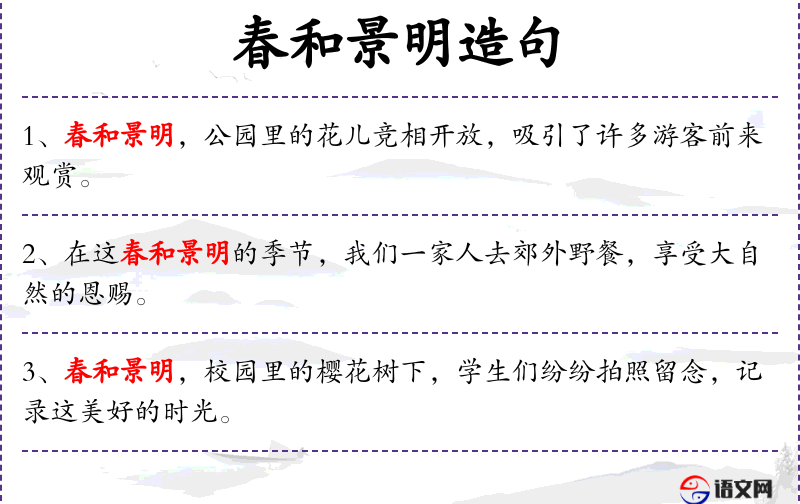 1. 【春和景明】 春光和煦,风景鲜明艳丽。