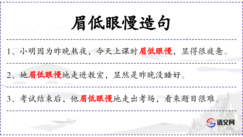 1. 【眉低眼慢】 - 形容精神散漫,懒得动弹的样子。