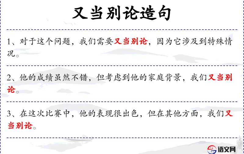 - 成语/典故:“当别论”类似于成语“另当别论”,表示在不同情况下需要重新考虑。